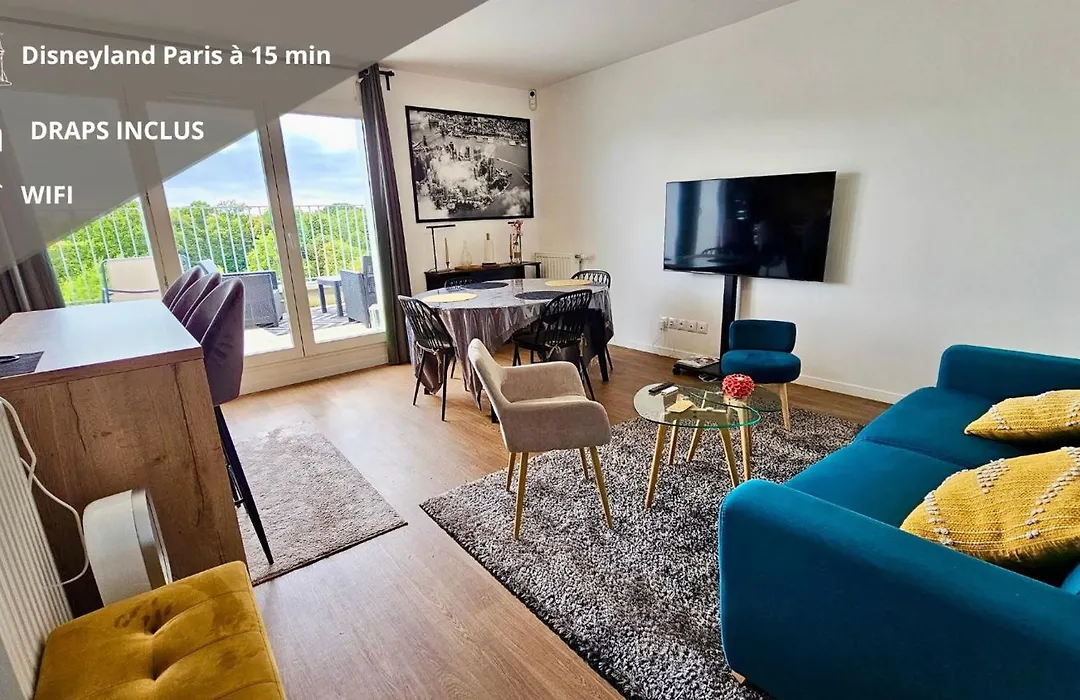 Az ingatlan biztosít felszereltséget önellátáshoz, például felszerelt konyhát, valamint vendégeinek kültéri étkezőhelyet kínál, ahol elfogyaszthatják ételeiket. A Too fast továbbá közvetlen közelében található az apartmantól. Elérheti a Gare de Noisiel vasútállomást nagyjából 600 méterre. További figyelemre méltó jellemzői a terasz és a kertre néző kilátás.